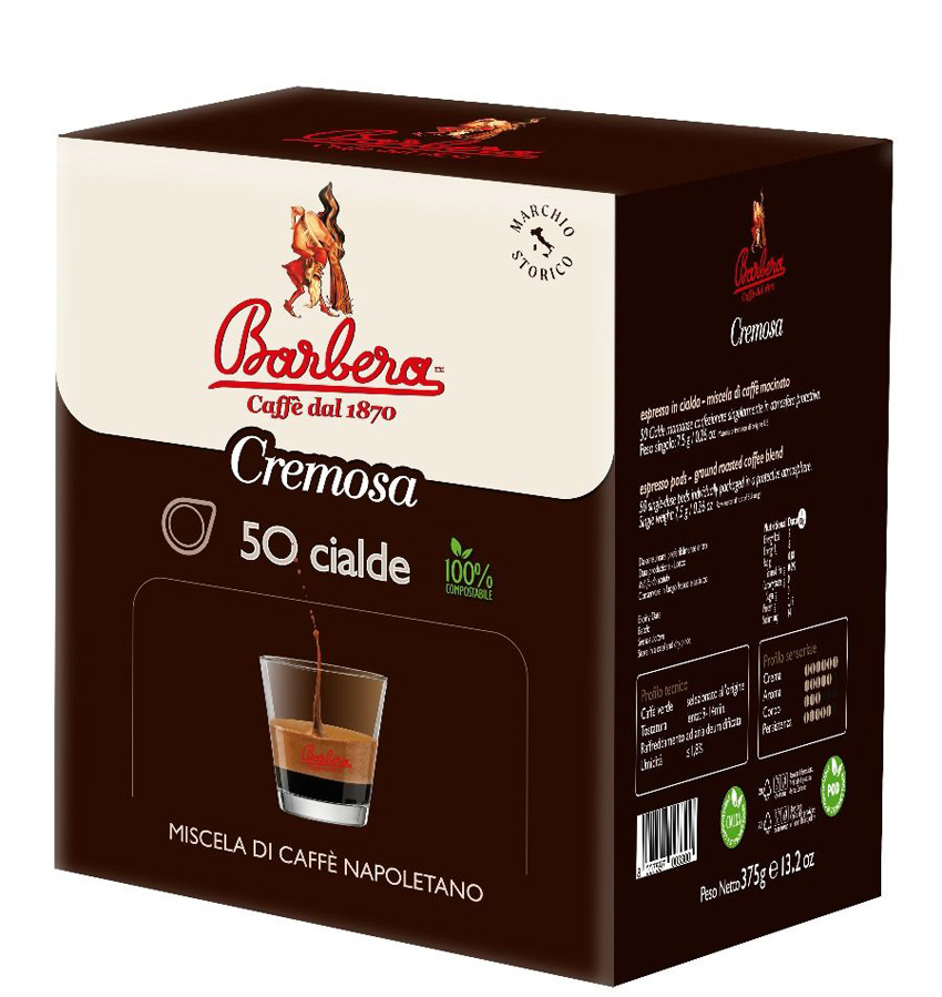 Caffè Barbera pods are extremely easy to use and are produced with biodegradable filters for quick disposal. Each pod contains a single-serving dose of roasted and ground coffee, hermetically sealed to avoid dispersion of aroma and to ensure the correct dosage and pressure of the coffee. Each single pod is made up of a sachet of ecological cellulose which, in addition to being biodegradable, is easily disposed of in the organic.